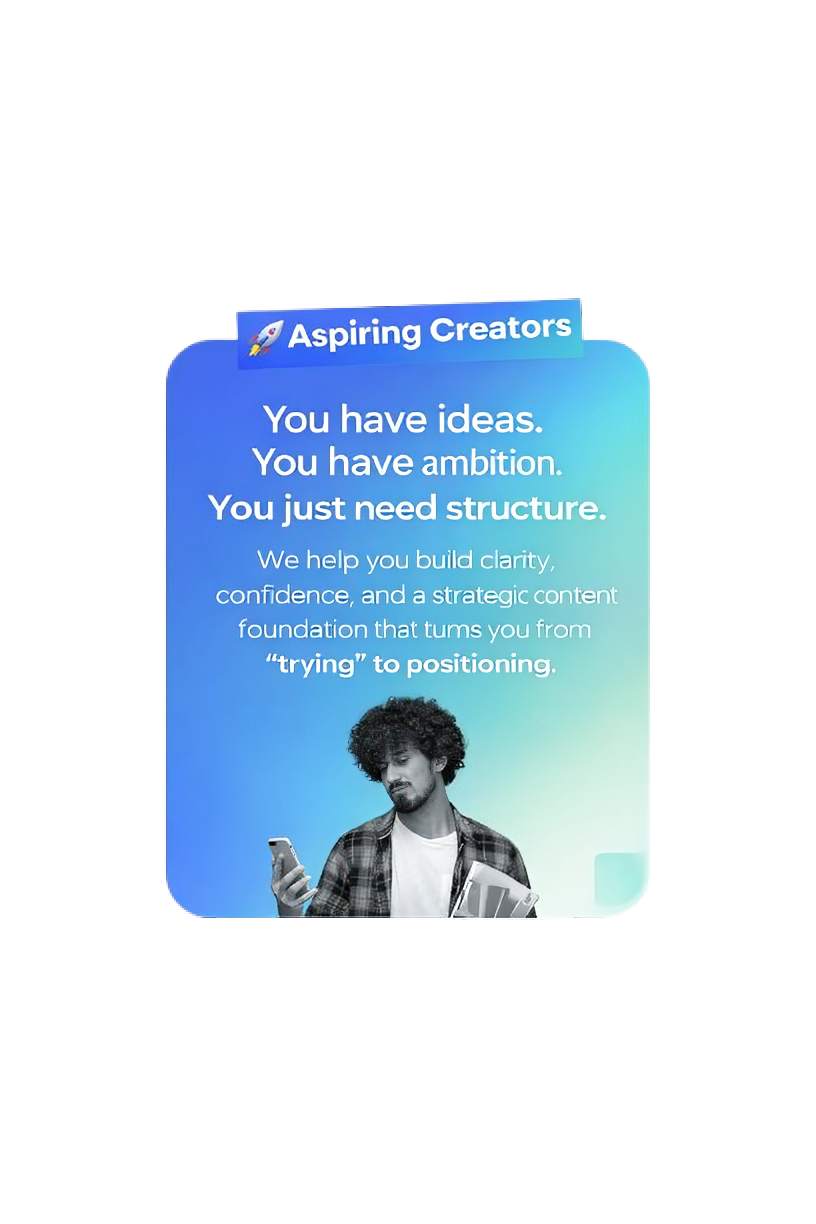 Strategy-led execution for creators who want visibility, authority, and real conversion — not random posting.